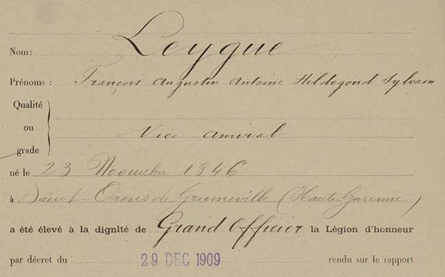 (nomination du 5 août 1899), Commandant le cuirassé "BOUVET",