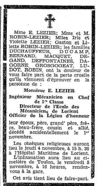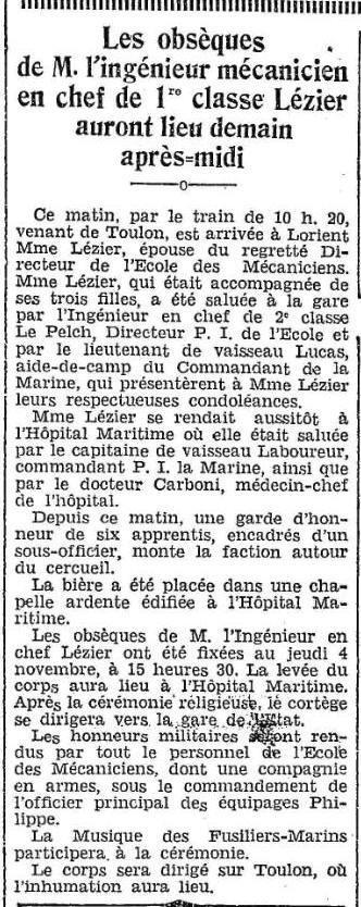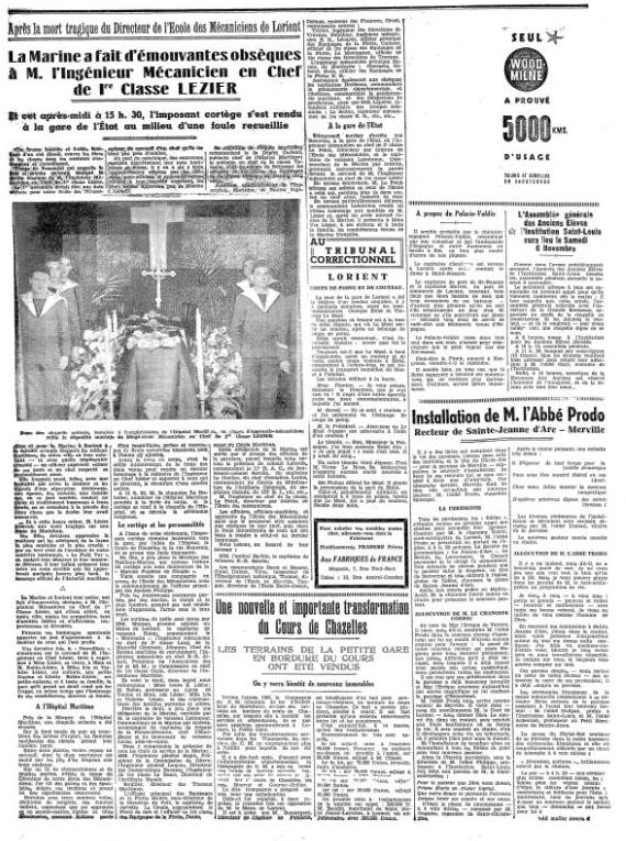 Extrait Le Nouvelliste du Morbihan / 3 novembre 1937
