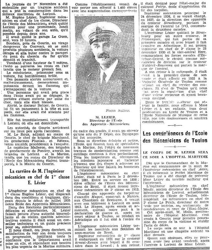 Extrait Le Nouvelliste du Morbihan / 5 novembre 1937