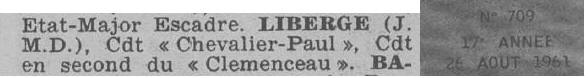 "CHEVALIER PAUL" du 30 décembre 1960 au 21 décembre 1961