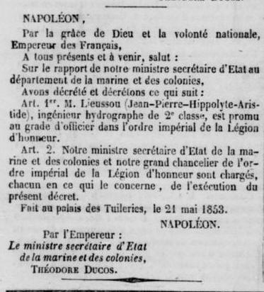 25 mai 1853 : il est promu Officier de