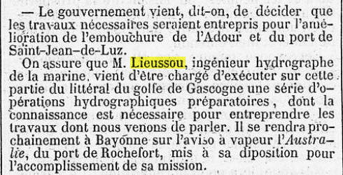 St-Jean-de-Luz pour travailler aux levés de l’embouchure de l’Adour.