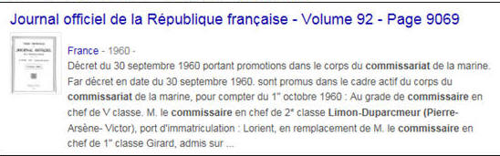 Commissaire en chef de 2ème classe en 1960 port Lorient