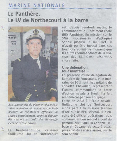Le 19 août 2016, prend le commandement du bâtiment Ecole Panthère