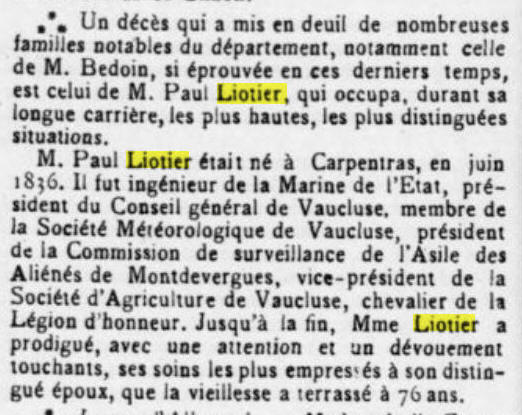 CARPENTRAS (Vaucluse) - Décédé le 13 avril 1912 à AVIGNON