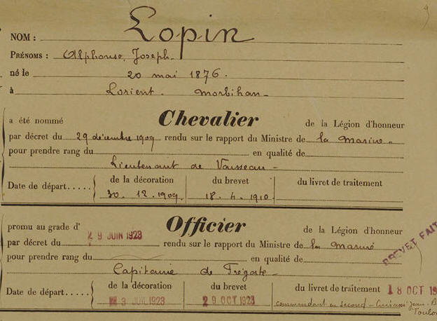 Lieutenants de vaisseau : Adrien Le PAGE, Alphonse LOPIN, Robert