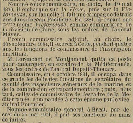 mai 1876. Au 1er janvier 1879, Officier d'administration sur le