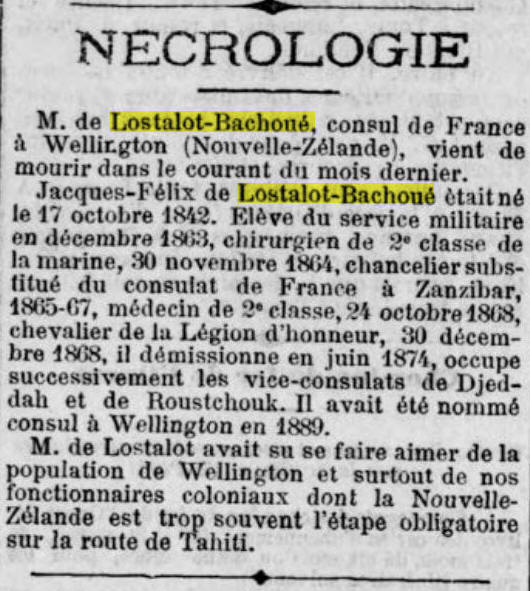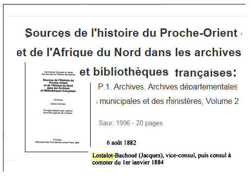 Nom parfois écrit Lostalot de Bachoué, nom retenu acte de naissance.