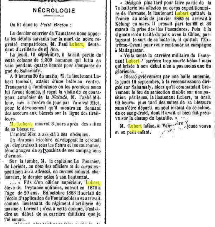 Né le 3 février 1859 à VANNES (Morbihan) - Décédé le 12 septembre