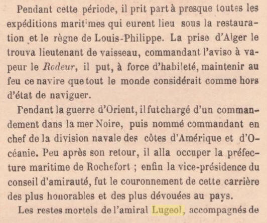 le 10 avril 1837, il est Second sur la "GLOIRE", en décembre, dans