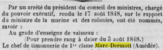 Lieutenant de vaisseau le 7 juin 1855; port CHERBOURG.