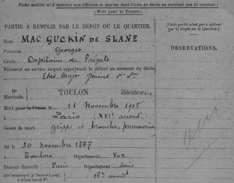 Décédé le 11 novembre 1918 à PARIS XVIème (Seine).