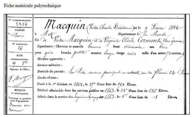 Fils de Victor Macquin, médecin principal et de Virginie Adèle
