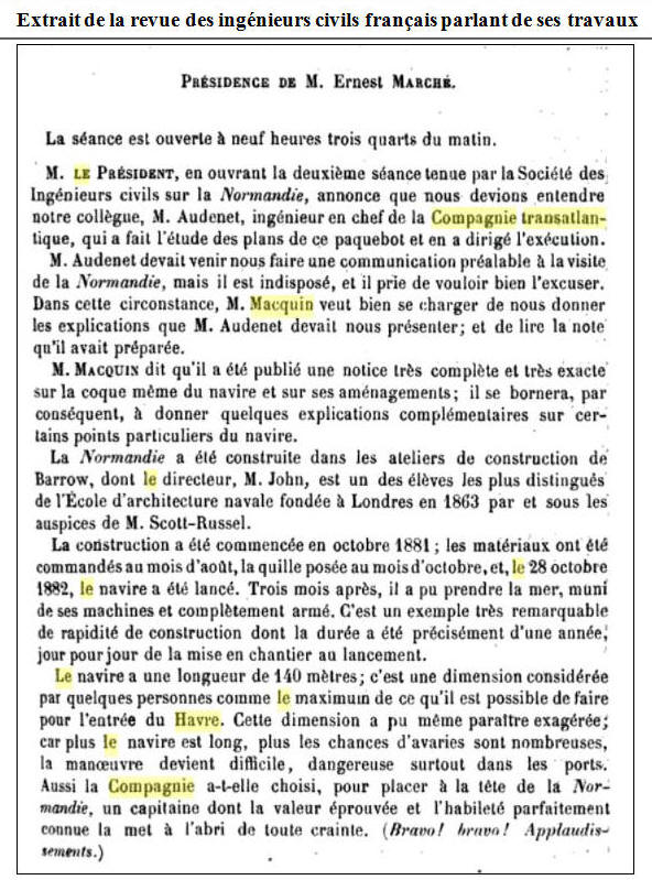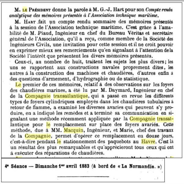 Ingénieur de la compagnie Transatlantique au HAVRE en 1888