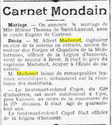 Ingénieur de 1ère classe le 11 octobre 1884, directeur de l’Ecole