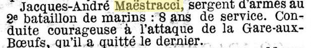 Chevalier de la Légion d'Honneur le 28 avril 1871, étant Sergent