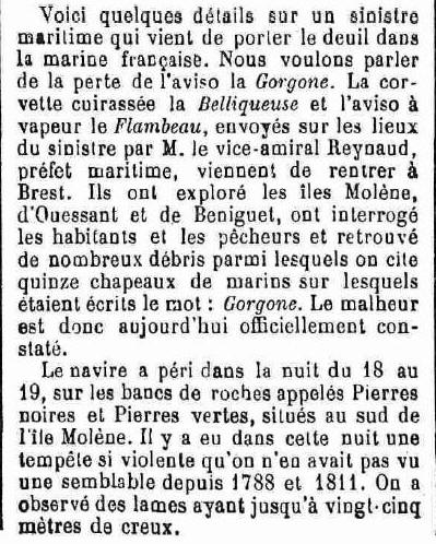 au large d'Ouessant, la Gorgone, commandée par le lieutenant de