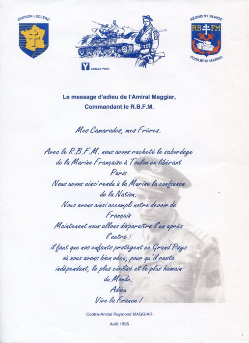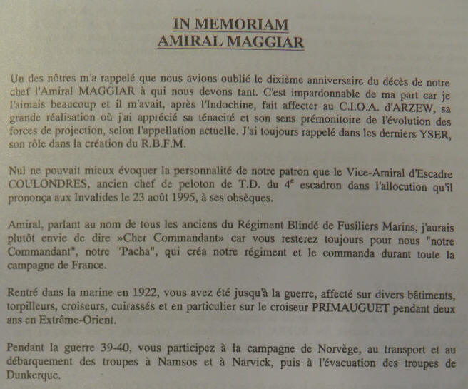 a dit au Capitaine de Frégate Maggiar, commandant le R.B.F.M. "sans