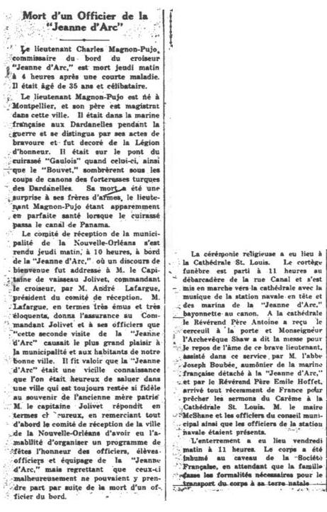 Il décède à Bord, à La Nouvelle Orléans cette même année.