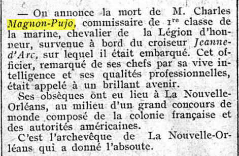 Coupure de presse du journal l’Abeille, décès à bord de la "JEANNE