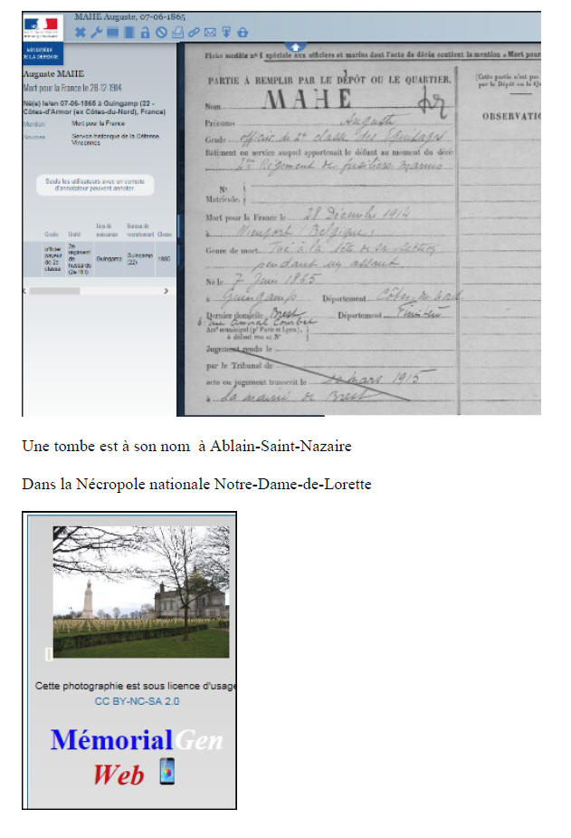 (Côtes-d'Armor) - Tué le 28 décembre 1914 à SAINT-GEORGES, NIEUPORT