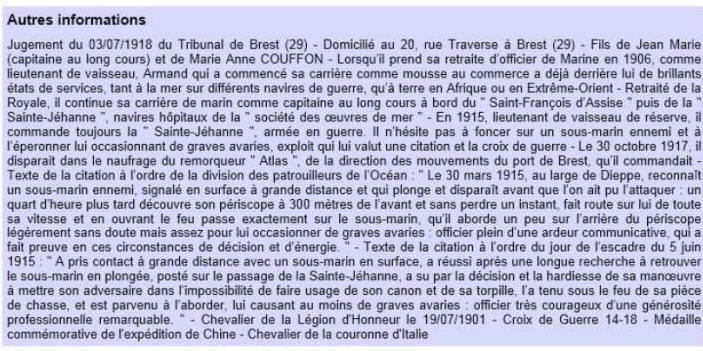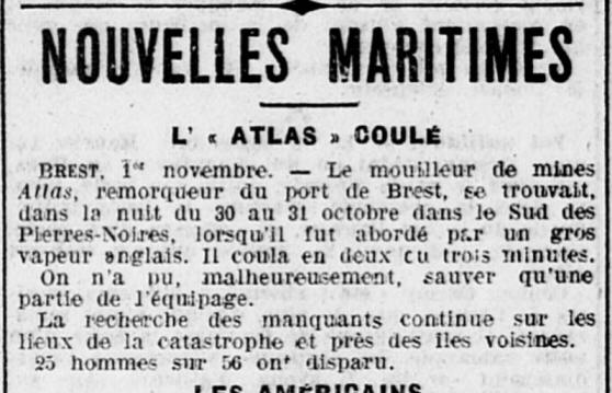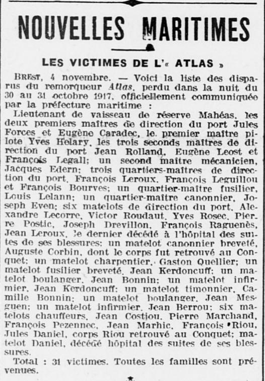 mouvements du port de BREST, Commandant le remorqueur "ATLAS", il