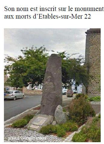 à ÉTABLES-sur-MER (Côtes-d'Armor) - Disparu le 30 octobre 1917 en