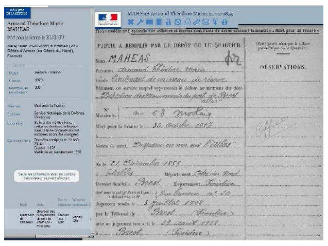 décès rendu le 3 juillet 1918 à BREST et transcrit le 29 août 1918