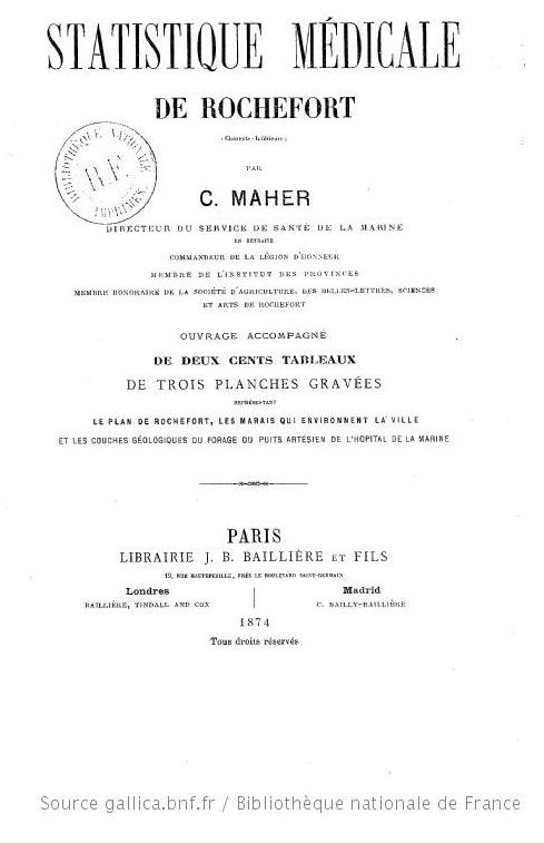 Statistiques médicales de Rochefort qui comportent 200 tableaux de