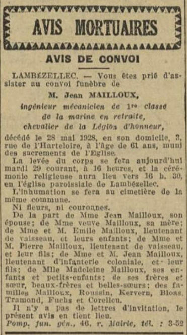 Né le 2 décembre 1866 à LAMBÉZELLEC (Finistère) - Décédé le 28 mai