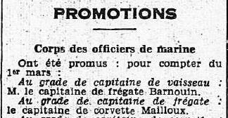 de vaisseau de 2ème classe le 5 février 1915; port BREST.