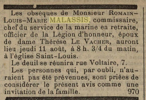 août 1887 - Brest (Finistère). Nommé commissaire de la Marine le 18