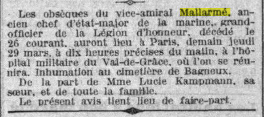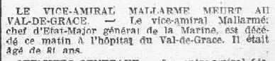 Décédé le 26 mars 1923 à PARIS, à l'hôpital du Val de Grâce (Seine)