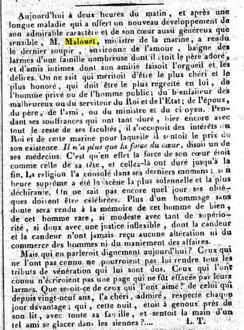 nommé Ministre de la Marine par Louis XVIII.