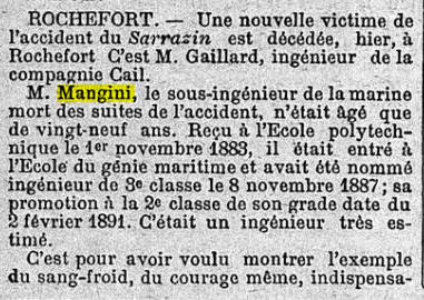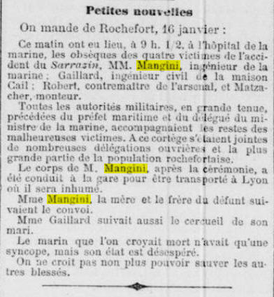 14 janvier 1894 : il est tué, avec cinq autres victimes, par une