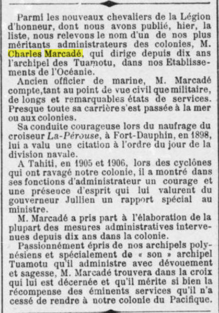 années en Océanie, chargé des Tuamotu. Commandera, de juillet 1910 à