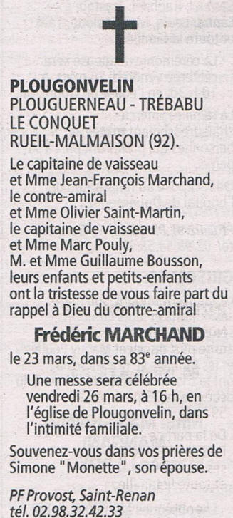 Décédé le 23 mars 2021 à PLOUGONVELIN (Finistère)