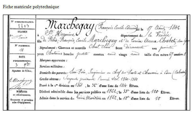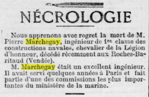 Petit fils de Félix Pierre Marchegay, aspirant de marine, démissionnaire