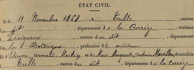 Né le 11 novembre 1868 à TULLE (Corrèze) - Décédé en 1939
