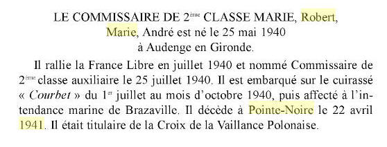 AUDENGE (Gironde) - Décédé le 22 avril 1941 à POINTE NOIRE