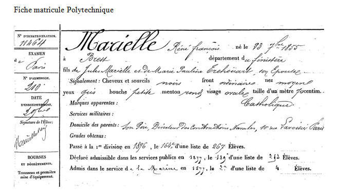Élève de l'École polytechnique en 1875, opte pour la Marine.