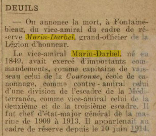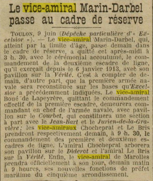 1906, Major général du 1er arrondissement maritime à CHERBOURG.