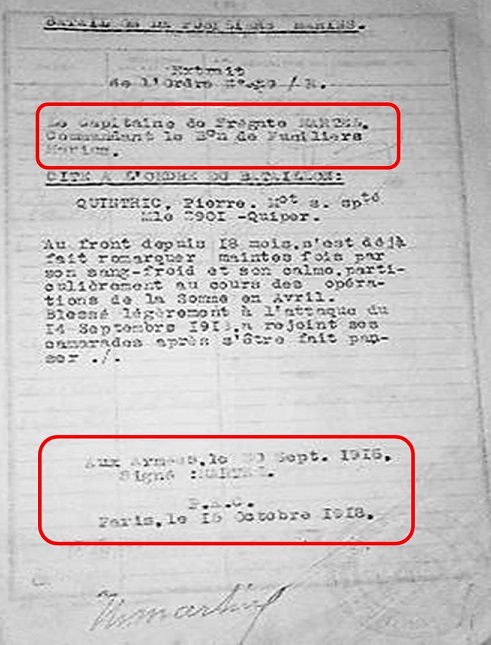 d'octobre 1918, Martel commande toujours car il est le signataire de