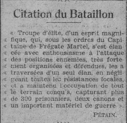 Frégate Martel (13 juin 1918 à la dissolution du bataillon ?). Le