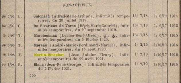 pour infirmité temporaire du 22 janvier 1921 au 21 septembre 1924