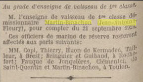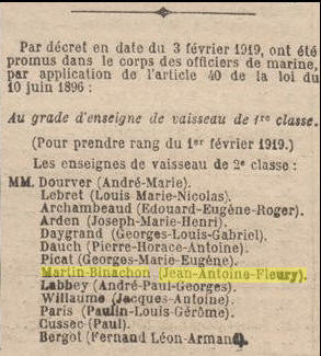1ère classe le 1er février 1919; port BREST.