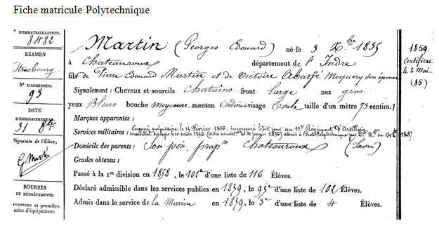Élève de l'École polytechnique en 1857, opte pour la Marine.