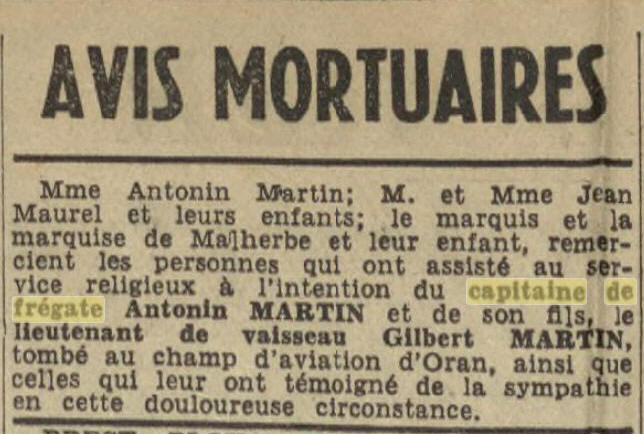 glorieuse le 23 octobre 1942 en service aérien commandé à Lartigue."