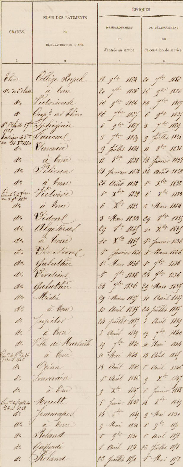 Entre dans la Marine en 1824.