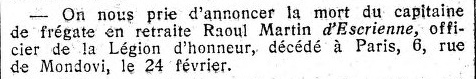 Joseph Théodore Raoul MARTIN d'ESCRIENNE